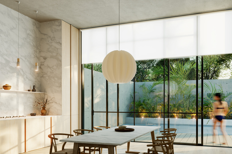 Rolety mění kvalitu světla, které do místnosti vstupuje. Světlá látka světlo odráží a rozptyluje, tmavá ho pohlcuje. To přímo ovlivňuje, jestli je místnost světlá a vzdušná, nebo útulná a intimní.